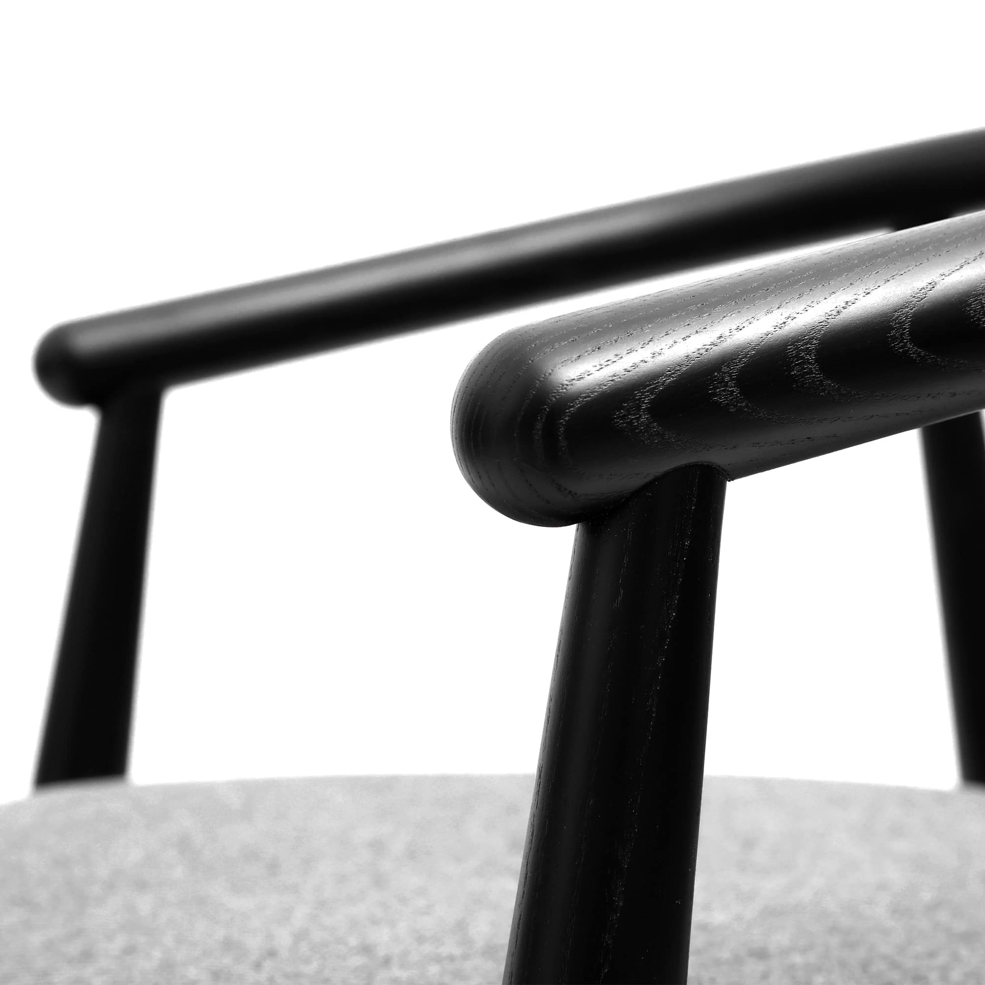 Auch bei schwarzer Oberflรคche bleibt Holz ein lebendiger Werkstoff. Leichte Unterschiede in Struktur, Maserung oder Haptik sind natรผrliche Eigenschaften des Materials. Sie machen jeden Stuhl einzigartig und unterstreichen seinen hochwertigen, authentischen Charakter.
